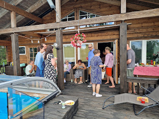 Kaikki alkoi helmikuusta, kun mieheni yritti salata meiltä muilta, että hän täyttää 50-vuotta. Juhlia hän ei introverttina ihmisenä halunnut töissä eikä kotona ja syntymäpäivä osuikin hyvin meidän Kanarian matkalle lähtöaikaan. Hiljainen poistumissuunnitelma ei kuitenkaan toiminut, vaan sinnikäs sukumme halusi lähestyä miestäni lahjoin ja onnitteluin kysellen, milloin synttärikahvit keitellään. Saimme minun siskokööriltä perheineen mm. kivan synttärilahjareissun Ouluun huhtikuussa, josta kirjoittelinkin täällä blogissa jo. https://kotiseudulle.blogspot.com/2024/04/lahteeko-meilta-kohta-tyopaikat.html Lopulta mieheni keksi, että mitä jos grillataan joskus kesällä tällä omalla perheellä.😀 Juhlia ei siis ollut eikä kutsujakaan, mutta siis vähän "grillattiin" viikonloppuna mökillä.😅